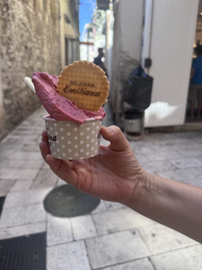 On our second day in Korcula, we took a hike to Kocje Nature Preserve and witnessed the changing landscape from fields to forests with rock formations and a cave. We began our hike from the village of Žrnovo, a small town with just over a thousand inhabitants. We started on a dusty road and walked through vegetation and century-old stone walls, heading towards Kocje Nature Park. The park has been designated a special forest vegetation reserve and protected area since 1962. During our hike, we learned about the flora of this ten-acre reserve, which includes wild Mediterranean shrubs such as sage, rosemary, and immortelle. We also saw a variety of wildflowers, ferns, and mosses that are native to this reserve. As we hiked, we enjoyed the sounds of nature and climbed a few boulders that required us to be on all fours. Toward the end of our hike, we saw the Peljesac coastline and walked through the charming town of Zrnovo to Eko Škoj, a farm-to-table restaurant. The restaurant’s menu comprises traditional Dalmatian cuisine that uses fresh, locally sourced ingredients. The setting was perfect, with olive groves and vineyards as our backdrop. The food was so delicious that we think it was the best we’ve ever had!